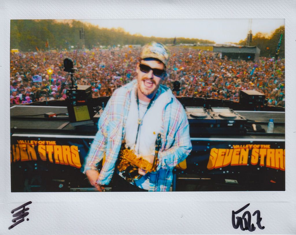 25, 1/1 signed instant photos from GRiZ's Valley of The Seven Stars Festival 2025. All 25 are exposures on fujifilm instax wide instant film sized 4.25" x 3.4" and signed by both Grant and Jason Siegel. Photo arrives in protective numbered sleeve.